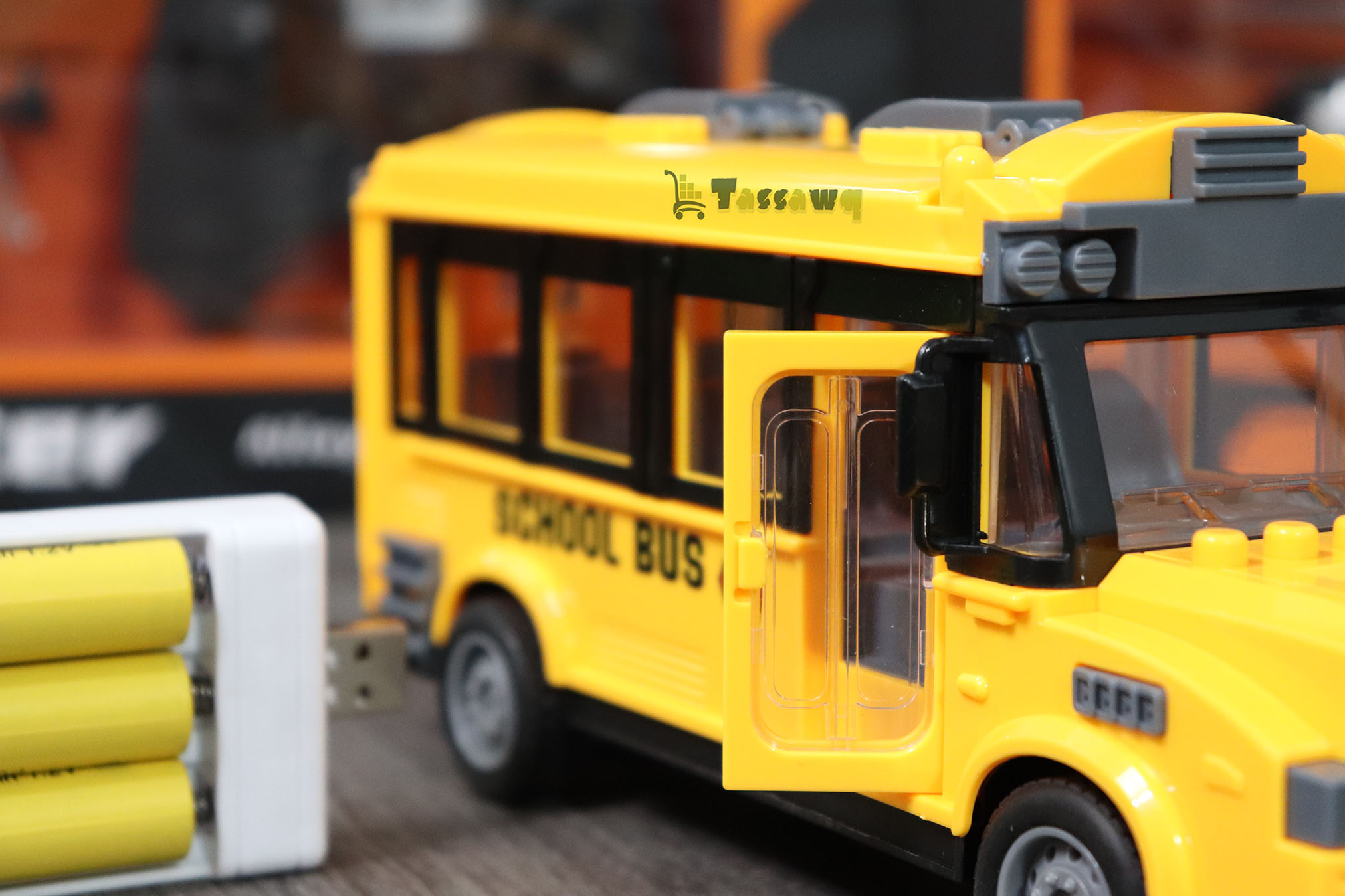 البطاريات: 6 بطاريات AA للحافلة (مرفقة) وبطاريتان AAA لجهاز التحكم عن بُعد (غير مرفقة).